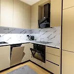 New & Modern Luxury Residence With Balcony has a fully equipped kitchen, where an oven and a dishwasher are provided for a comfortable stay.